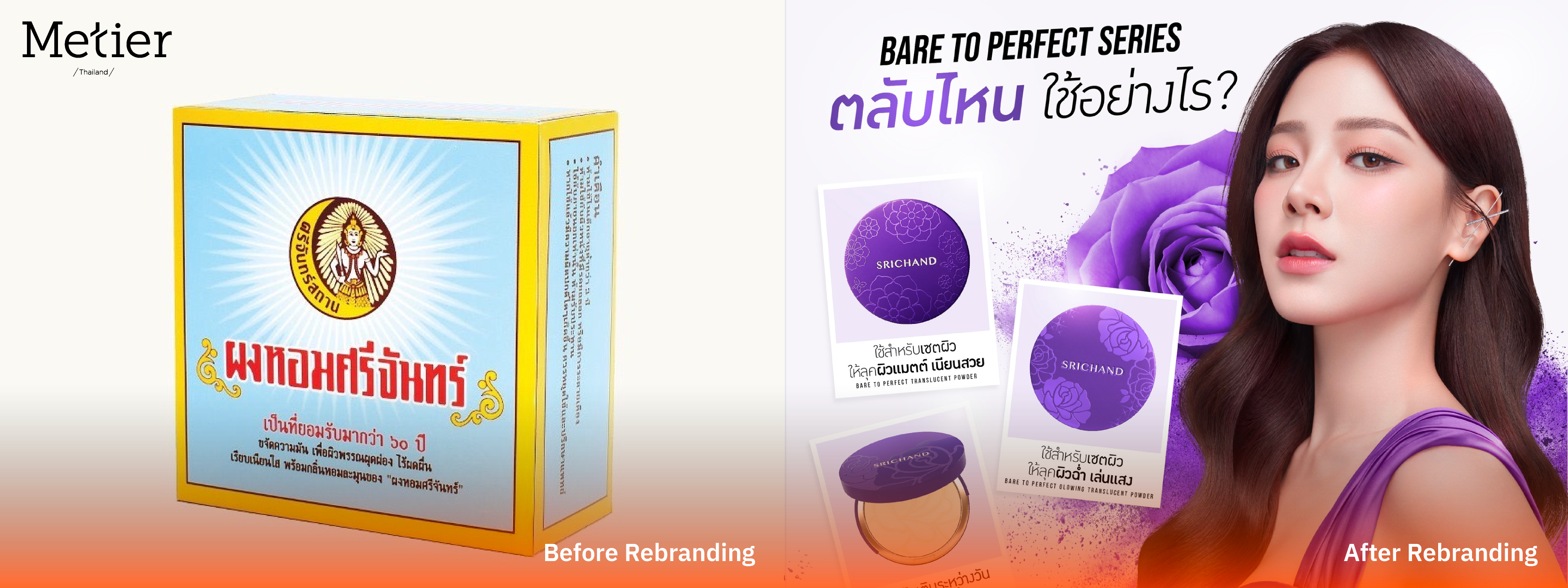 ตัวอย่างเช่น แบรนด์เครื่องสำอางศรีจันทร์ ศรีจันทร์ถือว่าเป็นแบรนด์ที่ได้รับความนิยมสูงในสมัยก่อน แต่เมื่อเวลาผ่านไปผลิตภัณฑ์เริ่มไม่ตรงกับความต้องการของผู้บริโภค จนคุณรวิศ หาญอุตสาหะ ทายาทรุ่นที่ 3 ได้เข้ามาบริหารและศึกษาหาความต้องการของตลาด ซึ่งภายหลังจากการ Rebranding กระแสการตอบรับของคนรุ่นใหม่ดีขึ้นอย่างเห็นได้ชัด คนในกลุ่มวัยรุ่นรู้จักและอยากทดลองใช้มากขึ้น เนื่องจากผลิตภัณฑ์มีความทันสมัย วัยรุ่นสามารถหยิบมาใช้ได้โดยที่ไม่ต้องกังวลว่าจะดูมีอายุ