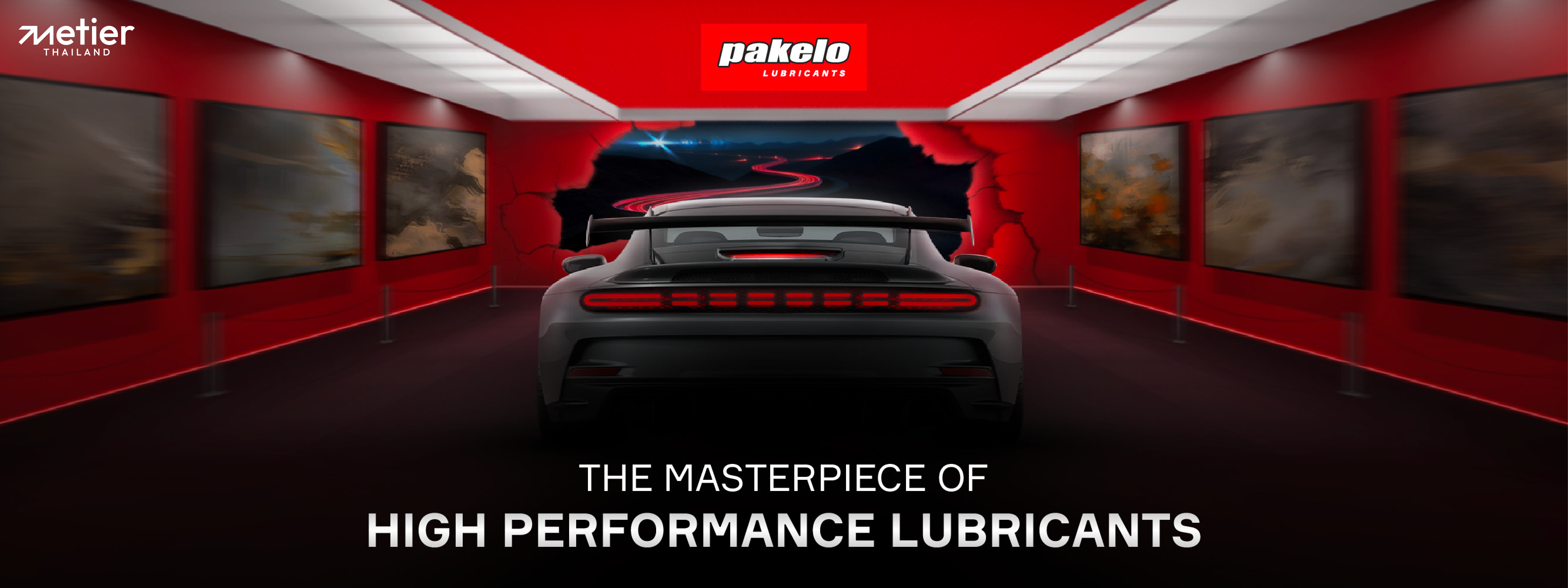 ซึ่ง Scarlet Museo สร้างความโดดเด่นด้วย KV ที่ผสานความงดงามระหว่างรถสปอร์ตและงานศิลปะ สื่อถึงการก้าวสู่โลกแห่งความเร็วบทใหม่ ส่วน Tagline ที่ทรงพลังอย่าง “The Masterpiece Of High Performance Lubricants เติมขีดสุดแห่งขุมพลังการขับเคลื่อน” สื่อถึงงานศิลปะ Masterpiece ที่ถูกสร้างอย่างประณีตเหมือนกับ Pakelo Lubricants ที่ได้ค้นคว้าและวิจัยมาอย่างละเอียด จนได้น้ำมันหล่อลื่นคุณภาพเหนือมาตรฐานที่สื่อถึงความเป็น “High Performance Lubricants” อีกทั้งยังใช้คำว่า “เติม” เพื่อสื่อถึงการเติมเต็มพลังขับเคลื่อนให้ถึงขีดสุด พร้อมพุ่งออกไปอย่างมั่นใจ